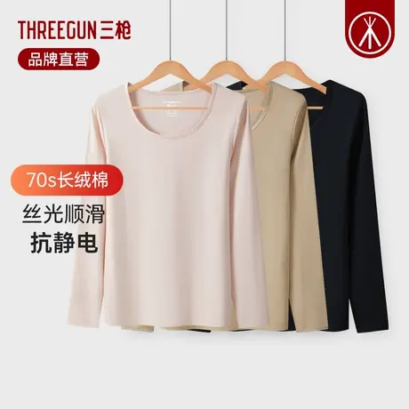 三枪保暖内衣女士70支长绒秋季薄款打底衫弹力贴身秋衣